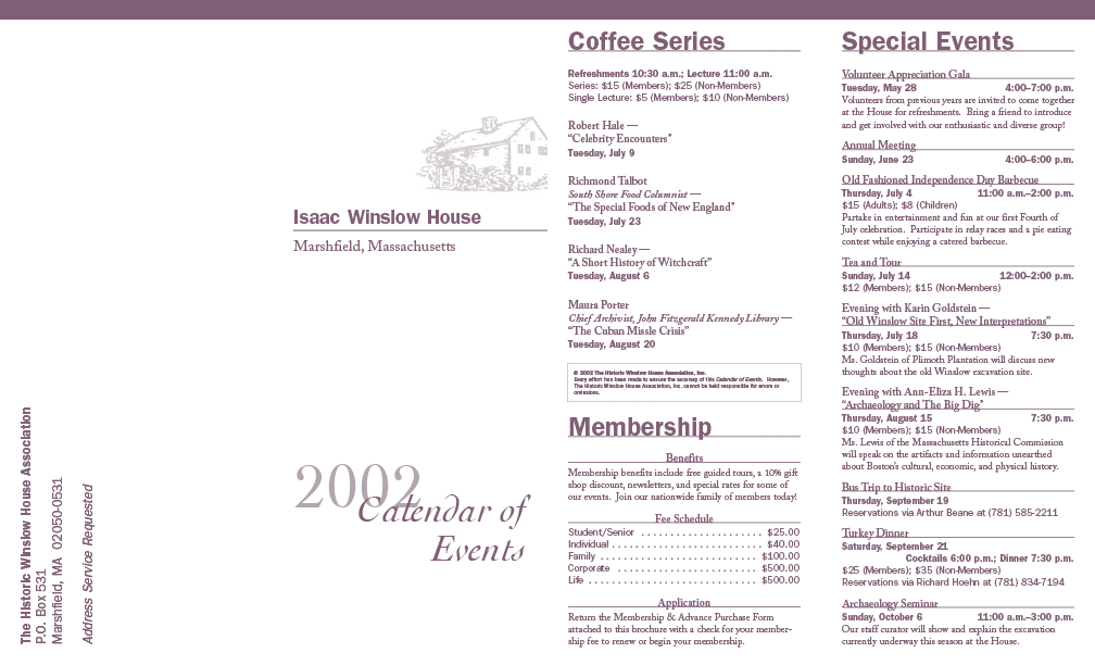 Winslow House 2002 Calendar of Events