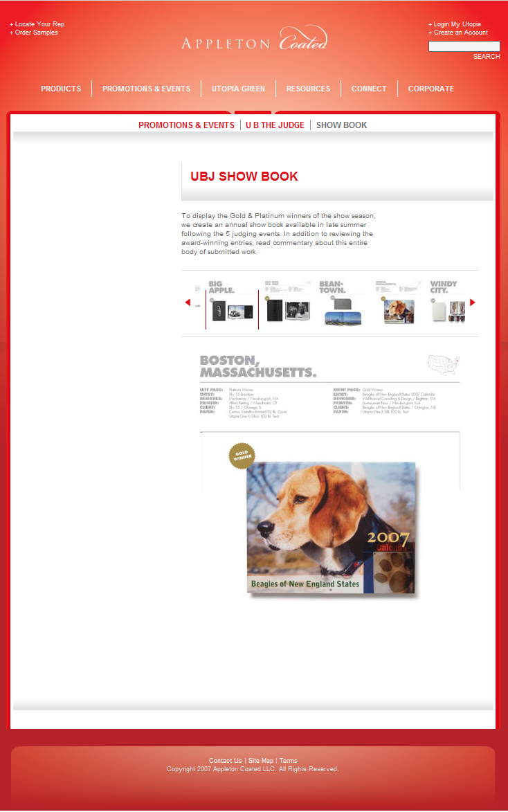 Voted Boston, Massachusetts' 2nd place winner in annual design competition for "Beagles of New England States 2007 Calendar", sponsored by Appleton Coated (paper manufacturer)...
